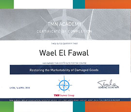 ISC has earned the certificate for restoring the marketability of damaged goods from TMN survey group association on April 2018